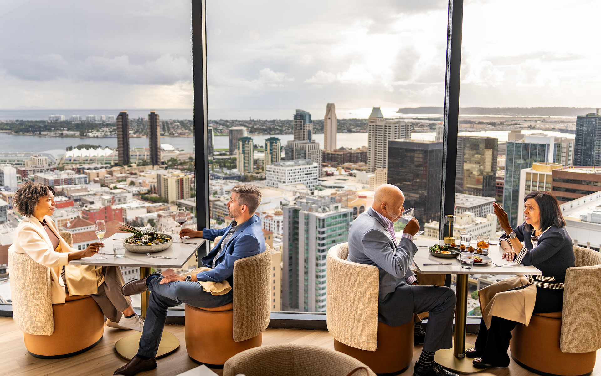 Reimagined with a fresh, modern coastal vibe, the Club offers an unmatched backdrop for every occasion. Perched on the 34th floor of Symphony Towers, our Club delivers 180° views of downtown and the Pacific, setting the stage for extraordinary experiences.